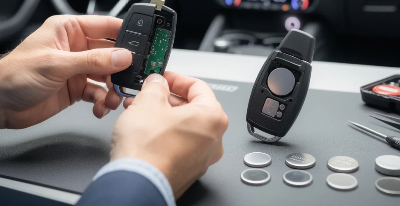 Bij het monteren van de nieuwe knoopcel in de keyless fob geldt hetzelfde principe als bij de klapsleutel: let op de pluspooloriëntatie en plaats de batterij vlak in de houder. Keyless fobs zijn vaak compacter, waardoor er minder spelingsruimte is. Een batterij die slechts een fractie scheef ligt kan de afdekkap klemzetten of zachte druk uitoefenen op de printplaat. In de praktijk is het verstandig de sleutel zacht te schudden en te controleren of er geen rammelend geluid hoorbaar is, wat zou wijzen op een loszittende batterij of onderdeel.