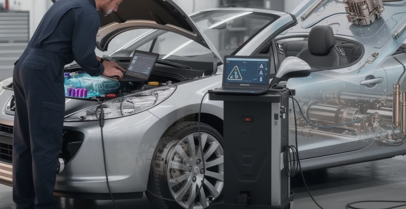 Wie een dakstoring bij de Peugeot 207 CC wil oplossen, begint idealiter met het uitlezen van de cabriodak-ECU via Peugeot Planet of Diagbox. Universele OBD-scanners missen vaak comfortcodes, terwijl de merksoftware specifieke foutcodes toont voor dakposities, sloten en hydraulische druk. Denk aan codes die wijzen op een defect slotmechanisme (kap ontgrendeling), onlogische posities van het kofferdeksel of een onderbroken signaal van de dakpositiesensor.
